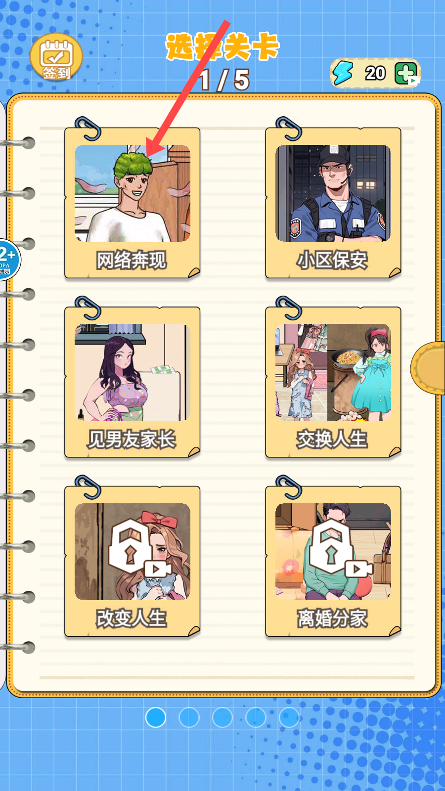 2、在关卡选择界面中,点击【网络奔现】等具体关卡选项,进入对应的场景剧情;