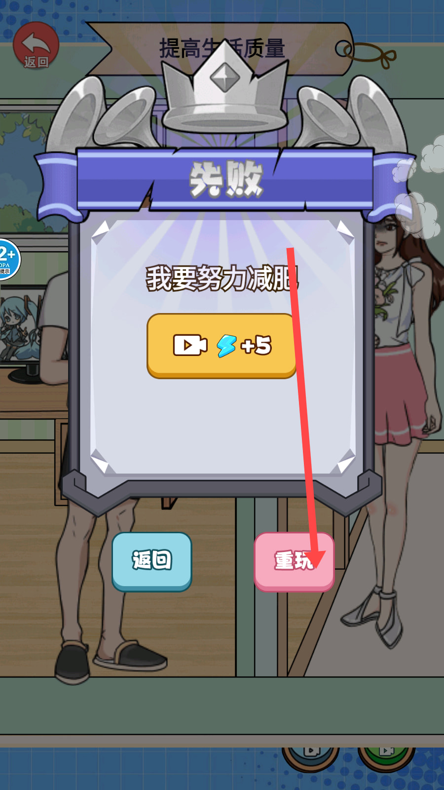 4、如果搭配未达目标要求,点击【重玩】按钮即可重新挑战当前关卡。
