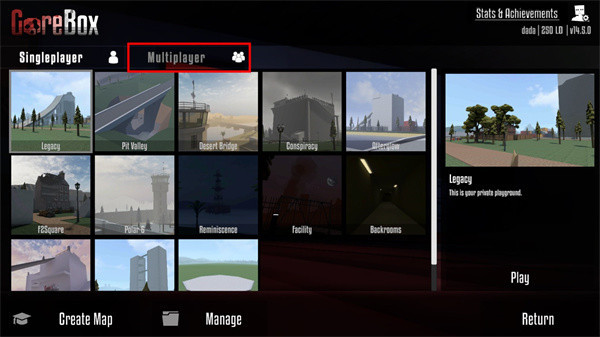 2、跳转至地图界面后,点击上方“Multiplayer(多人游戏)”;