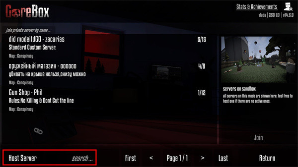 3、如果好友已创建房间,可以点击“search”搜索加入;如果未创建房间,需要点击“Host Server”创建主机;
