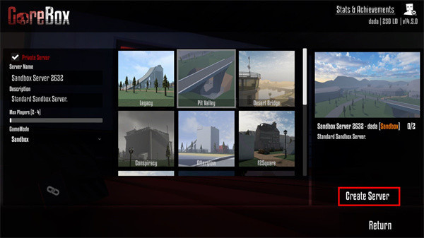 4、选择想要游玩的地图,点击“Create Server”完成服务器创建;