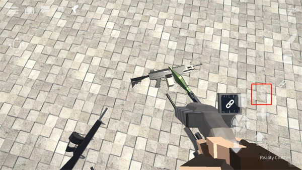 1、如果想持有枪械,需要先找到枪支;将准心对准枪械,屏幕左侧会出现手指图标,长按该图标即可拾取;