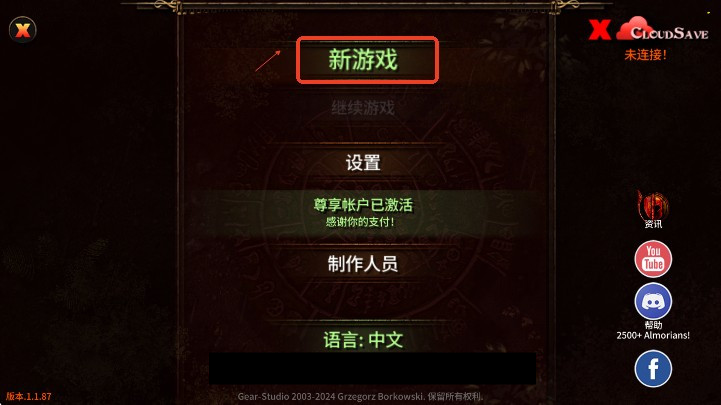 2、来到主界面,点击“新游戏”就能开启冒险;