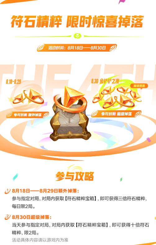 8月18日 - 8月29日:每日前两局对局,符石精粹掉落三倍!