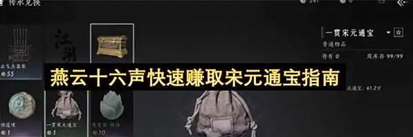 在燕云十六声这款游戏中,宋元通宝是每天都要使用的日常货币,无论是武学功法升级,还是新赛季承音系统的养成,都对宋元通宝有着巨大的消耗,不少侠士正被紧缺的宋元问题所困扰,下面就来一起看看怎么快速获得宋元通宝吧!