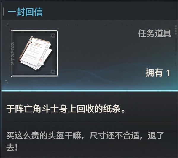 7.击败怪物后,拾取道具,获得道具一封回信。