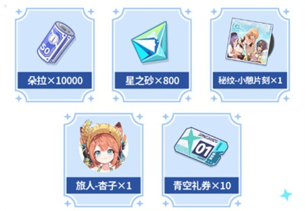 活动说明:完成养成任务并达成指定权限等级后,即可获得:萌芽礼券×20、亮银闪碟×21000、星之砂×780、精英简历自选包×1。