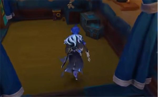 4.进入秘闻馆后,沿着走廊前行。在走廊右侧的角落,您会看到一堆堆放整齐的木箱与宝藏堆。
