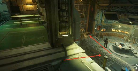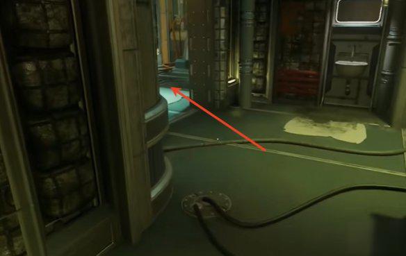 6、走到通道正对面附近,钥匙就藏在栏杆缝隙里;