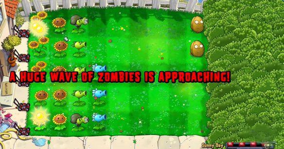 1、开局依旧两排向日葵,同时在第一个僵尸出现的对应路上放置土豆雷