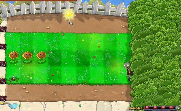3、然后在种了五个向日葵的时候开始替换为双子向日葵以增加阳光的产出