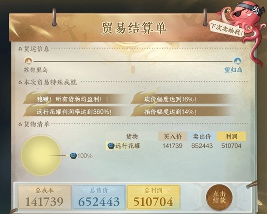 6.苏勿里岛的【远行花罐】销往望归岛变现