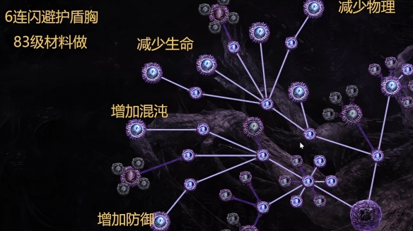 创生之树天赋:优先定向产出胸甲底材,结合工艺台+污秽链接石低成本赌 6 连,利用赛季机制快速积累资源。闪避护盾复合词缀需通过精华、深渊词缀及崇高石逐步优化
