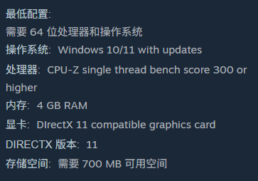 作为PC端的游戏,对于系统需求游戏会给出最低配置和推荐配置