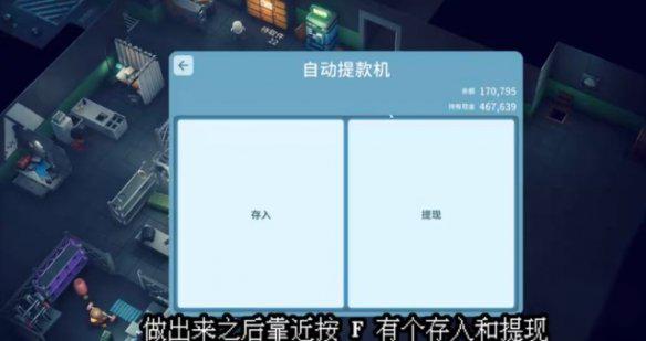 2、靠近ATM机后按下F键,将显示存入与提现选项。