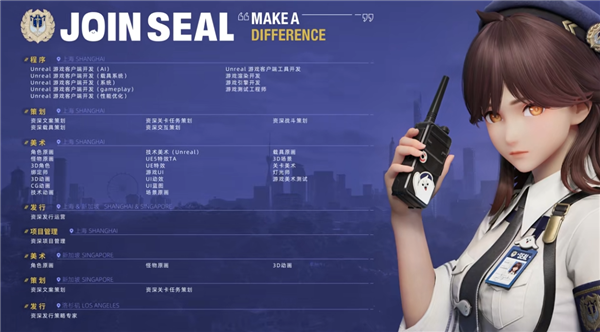 本作由《原神》原班制作人打造,开发核心地位于上海和新加坡,视频结尾同步发布了招聘启事,目前正在以上海和新加坡为主要工作地点,大规模招聘程序、策划、美术等多个领域的专业人才,显示出项目正处于全力冲刺阶段。