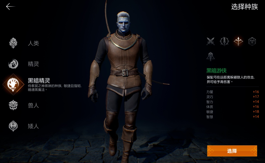 1.黑暗精灵突袭者:持匕首,有隐身和全职业最快移速,绕后突袭+debuff压制,PVP首选。黑暗精灵高敏捷提升暴击和闪避,主加敏捷可实现“隐身-偷袭-收割-撤离”闭环,防御低但靠技能和走位规避伤害,适合喜欢暗杀的硬核玩家。
