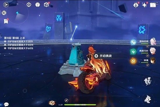 1.流月针的钟离或者香菱打平a,恰斯卡千织丝柯克平a也可以但N6容错太低,其他应该还好