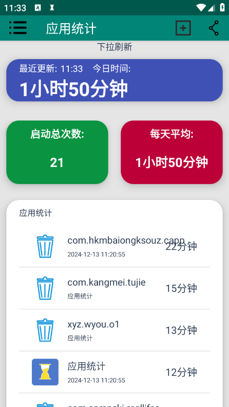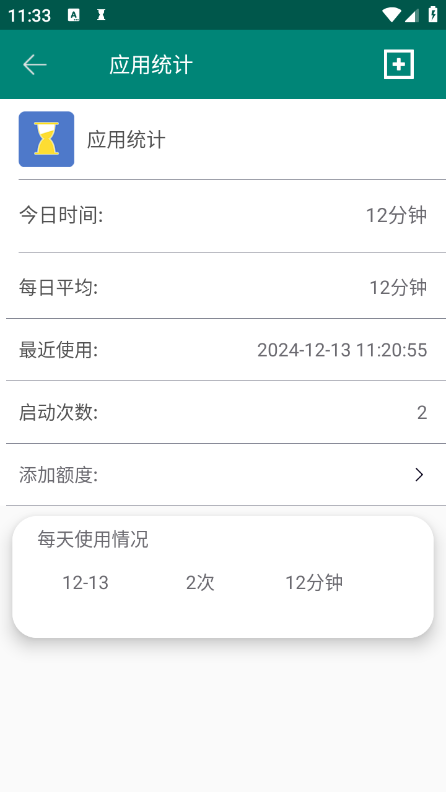 4、记录每个应用的使用时长、使用次数、平均每日使用时间及最近使用时间。