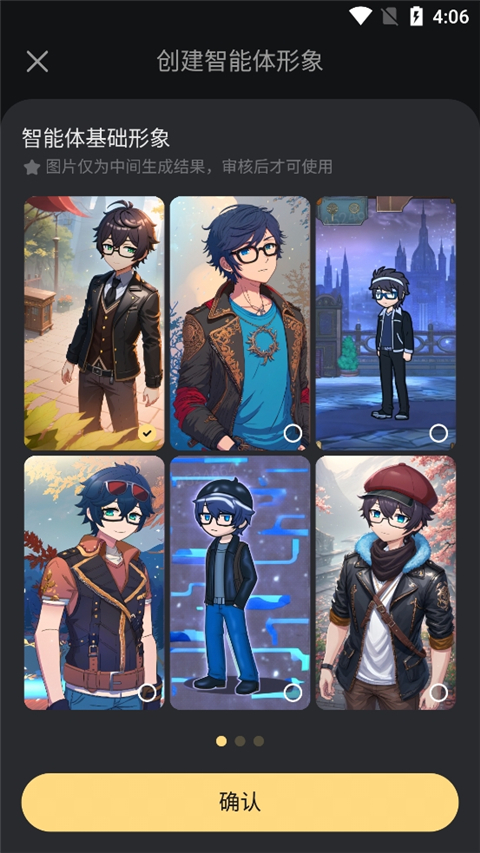 6、在生成的基础形象中挑选一张,点击“确定”;