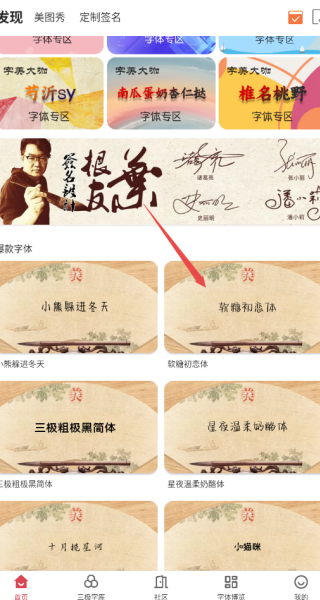 2、进入软件首页后,在“爆火字体”板块里,挑选喜欢的字体;
