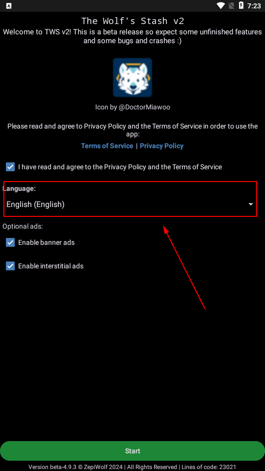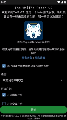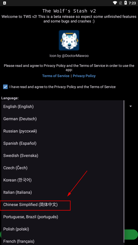 1、打开TheWolfsStash应用,将默认语言设置为英语或简体中文;
