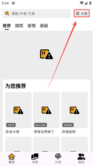 2、如果需要精准筛选,点击右上角“分类”按钮,所有漫画类型都已经汇总了;