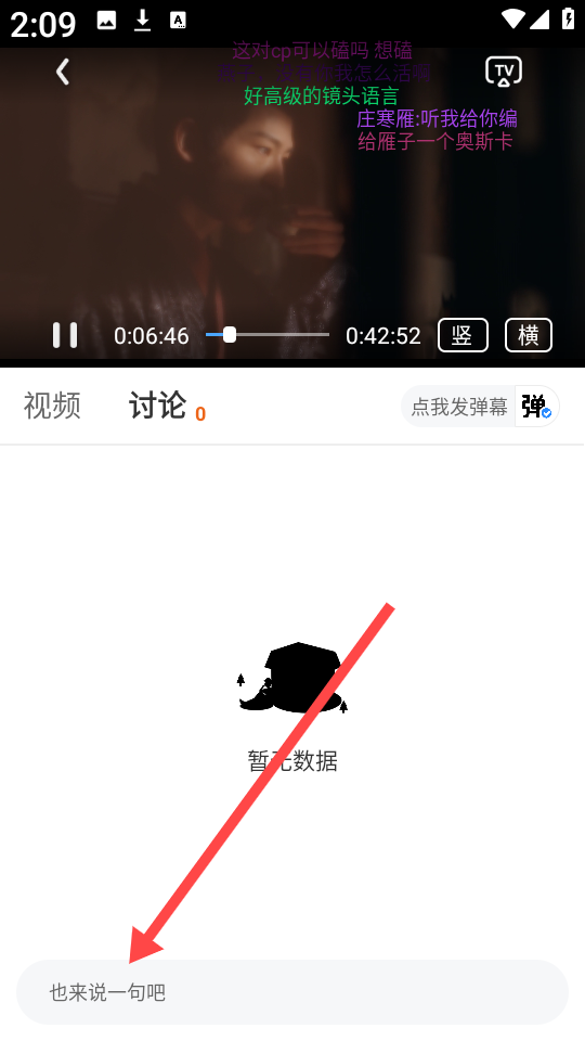 3、影片播放界面下方,可以输入弹幕参与剧情讨论互动。