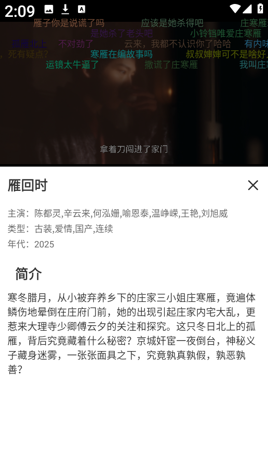 2、选择任意剧集播放,以下以“雁回时”为例;