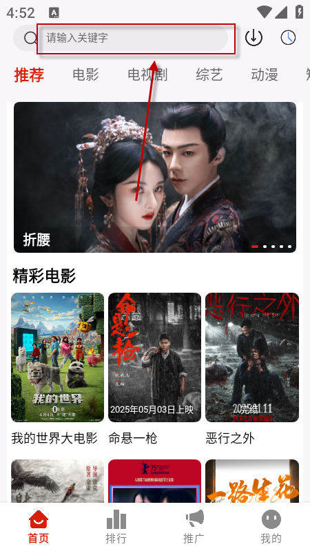1、启动二师兄影视后,可以直接点击首页影片播放,或者输入关键词进行搜索;